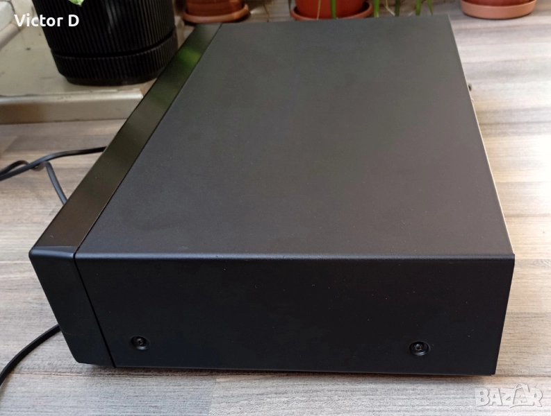 Много запазен визуално,като нов.Перфектен технически,без ремонти.Чете идеално,както матрични,така и записани СД-арове.Дистанционно липсва.Плейърът е с размери 95 мм височина, 455 мм ширина и 290 мм дълбочина.
