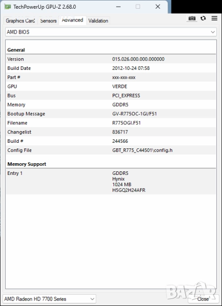 Model: AMD Radeon Gigabyte HD R7750 OC