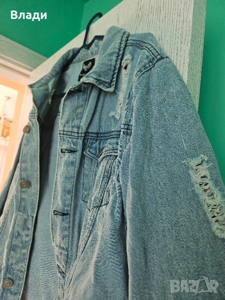 Дънковото унисекс яке на марката denim е в размер Л и в многоцветен цвят. Използвано е, но в добро състояние.Унисекс овърсайз дънково яке пролет-есен