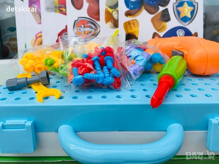 Отворете чудотворния куфар на конструктор с винтовер и започнете да пресъздавате любимите си анимационни герои! Комплектът за игра е изработен във формата на куфар, чиято повърхност има специални отвори и служи като платформа за сглобяване на мозайката.