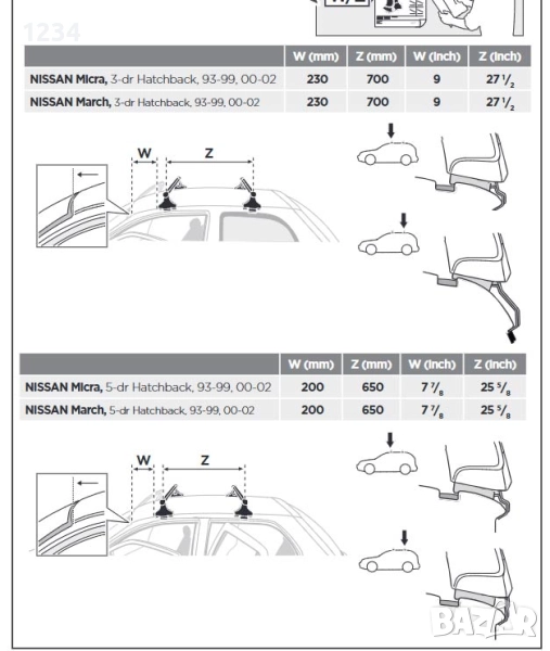 Багажник напречни греди THULE рейки за NISSAN Micra 1993-2002г. → Обява 51777346
