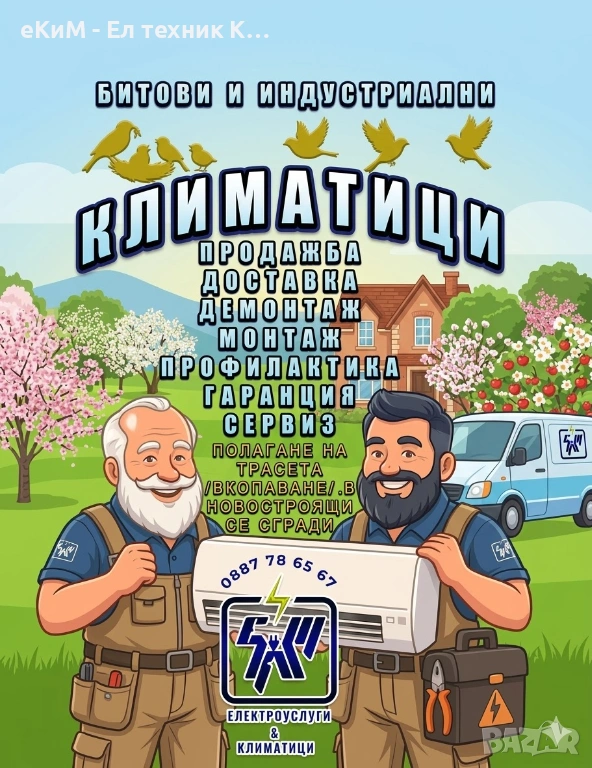 ⚡ ❄️ КЛИМАТИЦИ И ЕЛЕКТРОУСЛУГИ⚡❄️ 📞 0887 78 65 67 – “ЕКИМ”📦 ПРОДАЖБА на богат избор от модели БИТОВИ и ИНДУСТРИАЛНИ ➡️ Сплит / Мултисплит системи ➡️ Инверторни системи ➡️ Канални климатици ➡️ VRF / VRV системи 📦ВСЯКАКВИ РАЗМЕРИ🛠 Професионален МОНТАЖ🧹 ПРОФИЛАКТИКА и СЕРВИЗ – за чист въздух и по-дълъг живот на уреда (вътрешно и външно тяло) допълване с фреон⚡ Ремонт и сервиз от ОТОРИЗИРАН екип ♻️ ДЕМОНТАЖ🏗️ПОЛАГАНЕ на тръби за НОВОСТРОЯЩИ СЕ СГРАДИ🌡 Монтаж на термопомпи и смарт термостати.⚡ Ел техник - 🔌 ЕЛЕКТРОУСЛУГИ - силнотокови / слаботокови системи🛠️ Изграждане на цялостни нови електроинсталации - двуфазен / трифазен ток 🛠️ Подмяна на стари кабели 🛠️ Полагане на нови захранващи линии за уреди ( бойлер , климатик , печка , пералня , аспиратор и други) 🛠️ Разделяне на кръгове 🛠️ Смяна на табло , подтабла , разпределителни кутии 🛠️ Монтаж и настройка на дефектнотокова защита ( ДТЗ / УЗО ) 🛠️ Инсталация на мълниезащита и заземителна система 🔥ФОТОВОЛТАИЦИ / фотоволтаични системи 🔥( PV /слънчеви панели )💡 ОСВЕТЛЕНИЕ 💡 Смяна и монтаж на осветителни тела 💡 Монтаж на лунички, скрито осветление, профили с LED ленти, други лампи / лампа 💡 Инсталация на сензори за движение💡 Аварийно осветление💡 Градинско, фасадно и архитектурно осветление 💡 Смяна на фасунга , ключ , димер , крушка , пура💡 Програмиране на осветление със смарт контрол 💡 Индустриално осветление ( халета , складове , паркинги ) , окачени тавани , полилей 🔲 КОНТАКТИ, КЛЮЧОВЕ, БУТОНИ 🔲 Смяна на стари контакти и ключове 🔲 Добавяне на нов контакт / ключ / бушон 🔲 Монтаж на влагозащитени контакти и ключове 🔲 Монтаж на подови контакти, колонки 🔲 Преработка на контактни линии⚡🔐 СИСТЕМИ ЗА СИГУРНОСТ И УДОБСТВО 🎥 Видеонаблюдение ( IP и аналогови системи) 🔔 Домофони, видеодомофони, звънци 🔑 Контрол на достъп ( чипове , карти , кодови брави) 🚨 Алармени системи и пожароизвестяване📱 Смарт системи ( контрол през телефон - осветление , отопление , камери , щори ) 🔋 Свързване на резервно захранване ( UPS , генератори ) 📝 Как работим? 1️⃣ Получавате оглед и консултация след изпращане на запитване. 2️⃣ Изготвяме индивидуална оферта – с ясни условия и точна цена. 3️⃣ Извършваме монтажа професионално и в срок. ✅ Гаранции: • За климатик, закупен от клиента – гаранция за монтажа. • За климатик, закупен от нас – гаранция както за уреда, така и за монтажа. 📞 Свържете се с нас за оферта и професионална консултация! 📅 Работим и СЪБОТА И НЕДЕЛЯ – само с предварителна уговорка. 🚚 Допълнителни предимства: 1️⃣ За труднодостъпни места предлагаме монтаж със специализиран автомобил (вишка). 2️⃣ За климатици, закупени от нас – няма такса за качване до етаж. ✅ Обслужваме и селата в региона на ЮГОЗАПАДНА БЪЛГАРИЯ и София , Благоевград , Банско, Добринище, Места, Обидим, Филипово, Кремен, Осеново, Годлево, Бачево, Долно Драглище, Баня, Елешница, Горно Драглище, Добърско, Белица, Якоруда, Симитли, Предел, Садово, Черешово, Покровник, Логодаж, Еленово, Бело поле, Церово, Падеш, Рилци, Дъбрава, Зелен дол, Бучино, Делвино, Бистрица, Марулево, Българчево, Изгрев, Разлог, Рила, Дебочица, Дренково, Клисура, Лешко, Лисия, Мощанец, Обел, Селище, Кресна, Струмско, Хърсово, Айдарово, Кочериново, Краище, Бабяк, Драгоново, Златарица, Орцево, Лютово, Палатик, Влахи, Ощава, Градешница, Крупник, Черниче, Брежани, Ст