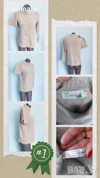 3️⃣. Колаж / L / 2XL - "Cassis". Цената е крайна, без пазарлъци 39,99лв / 20 евро. Дамски пуловер от коприна, ангора и примеси; с джобче отпред, много мекичък и приятен за носене и допир до кожата. Без дефекти и етикет.