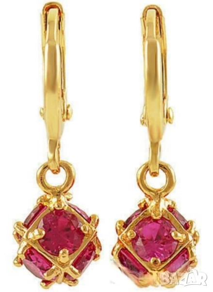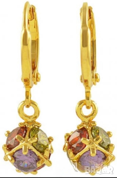 Нежни детски обеци от 9к попълнено злато с висящ цирконий 15 лв.