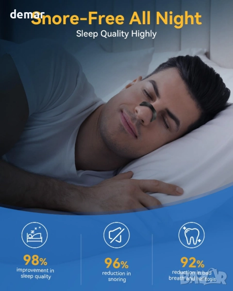 Тази магнитна щипка за нос е предназначена да намали хъркането, като подобри въздушния поток през носа и предотврати дишането през устата, помагайки ви да постигнете по-дълбок и по-спокоен сън. Предлага се в четири размера, подходящи за различни форми на носа, с лека, щадяща кожата силиконова конструкция, която осигурява комфорт през цялата нощ. Сигурното прилягане остава на мястото си, дори ако се движите, а включеният апликатор я прави лесна за употреба. Компактният калъф за пътуване я прави хигиенична и удобна в движение, докато дизайнът, който може да се пере и е за многократна употреба с резервни подложки, позволява дълготрайна употреба.