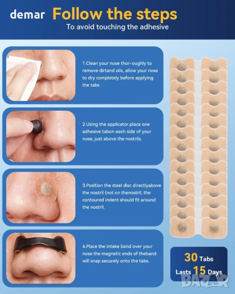 Магнитни ленти за нос с калъф за съхранение, 30 бр., устройства против хъркане,универсално прилягане