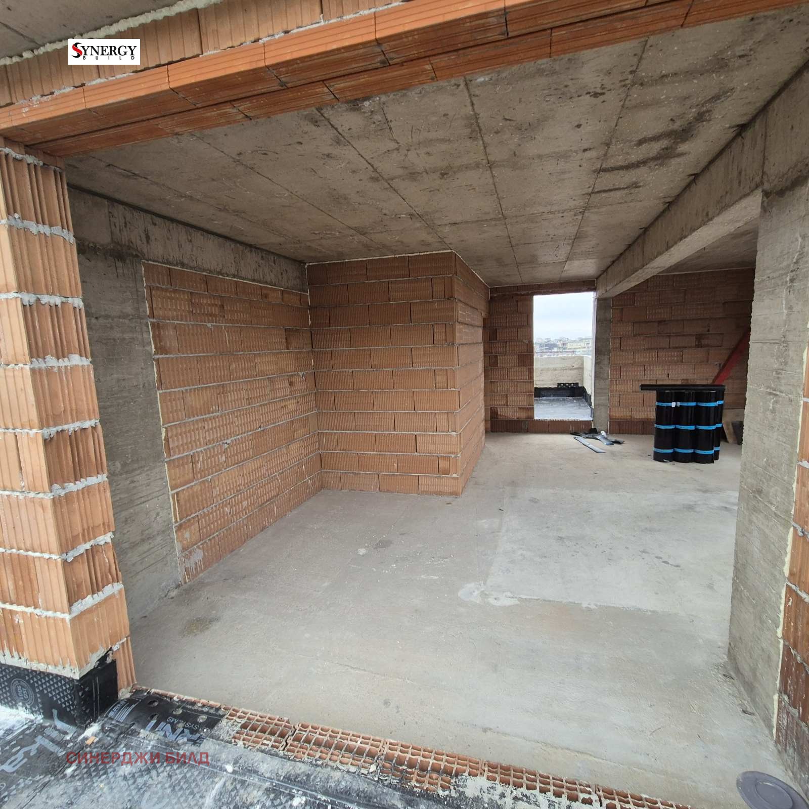 Двойна зидария wienerberger-porotherm с поставена каменна вата между двата зида с цел постигане на максимална шумо и топлоизолация.