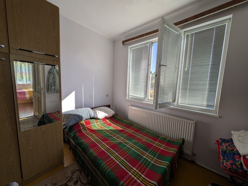 Реф:D1010 Описание: Продава се двуетажна самостоятелна тухлена къща с площ 150 кв.м. и двор от 660 кв.м., разположена в гр. Дебелец, само на няколко минути от Велико Търново. Имотът предлага функционално разпределение с по три стаи на всеки етаж свързани чрез вътрешно стълбище, като на всеки етаж има и баня с тоалетна. Къщата разполага и с гараж от 25 кв.м. Налични са маза и таванско помещение, както и допълнителна стая над гаража с просторна тераса. Жилището е с поставена PVC дограма в почти всички стаи и вътрешна изолация на втория етаж, отоплява се с локално парно на дърва и три климатика, а соларни панели и газов бойлер осигуряват топла вода през цялата година. Това е дом, който съчетава традиционно строителство с модерни удобства и е отличен избор за постоянно живеене или за ваканционен имот в тиха и зелена среда в близост до града. В двора има стопански постройки, кладенец и изградена поливна система.