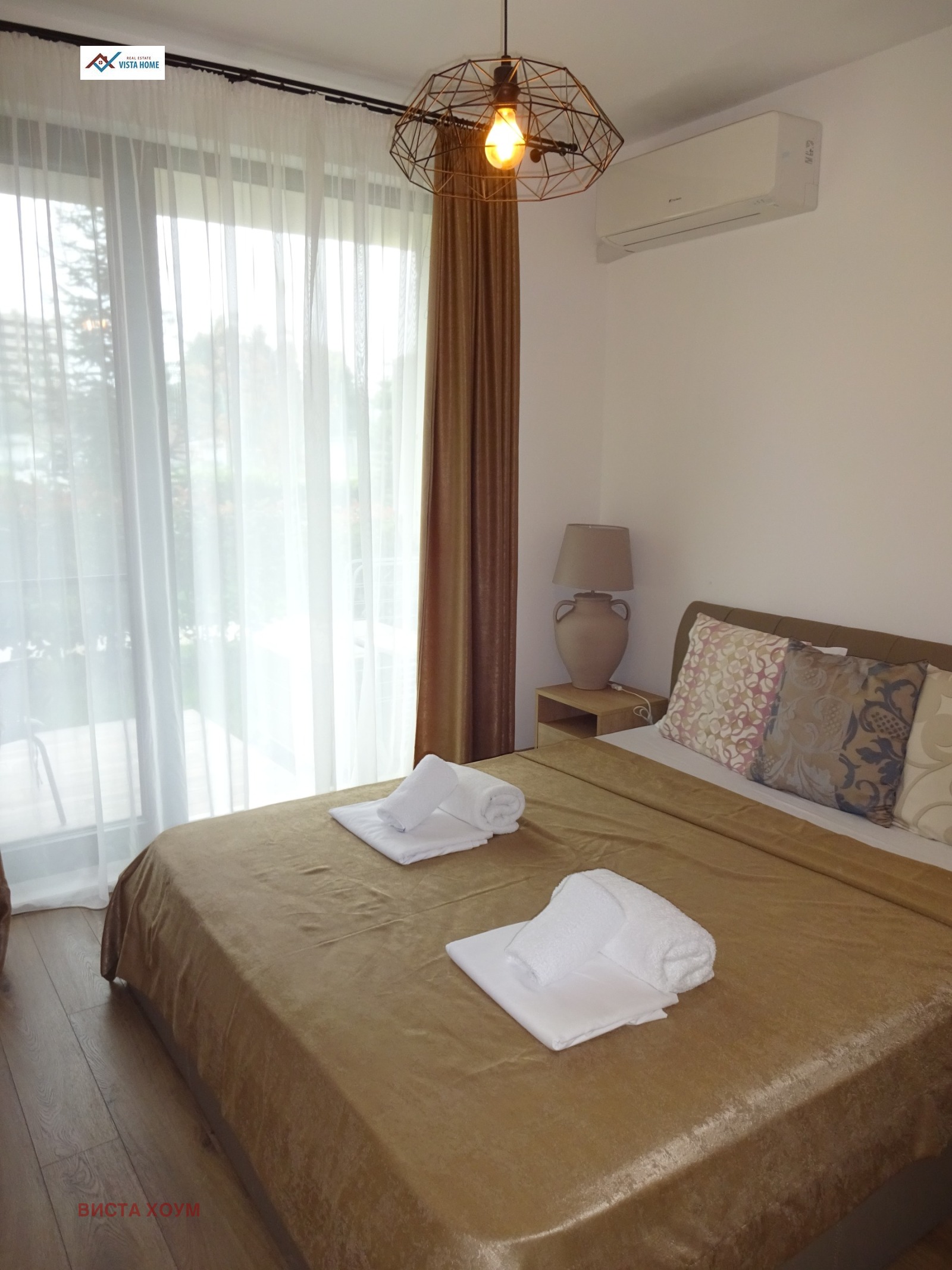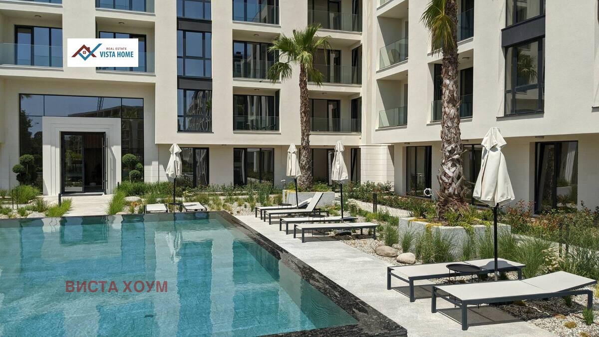 Предлагаме ново луксозно жилище в модерен комплекс в курорта св.св. Константин и Елена. Жилището е стилно обзаведено с инсталирани всички необходими електроуреди за едно домакинство. Състои се от дневна, спалня, коридор, баня и тоалет, малка озеленена тераса. Отлична локация в тих и спокоен район, намиращ се на около 15-на минути от центъра на град Варна.