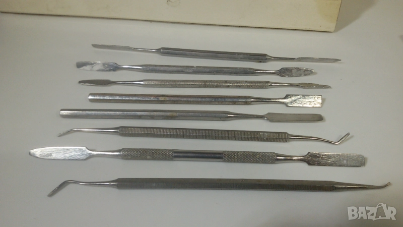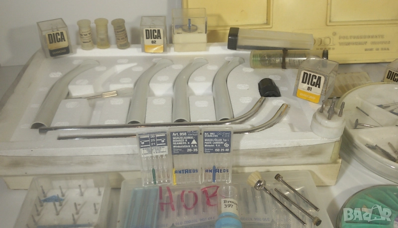 Всякакви дентални приспособления. Ножичката е захабена, както и някои от металните уреди. Не съм запознат много, за да коментирам по оставилите части. Продава се всичко, което се вижда на снимките.