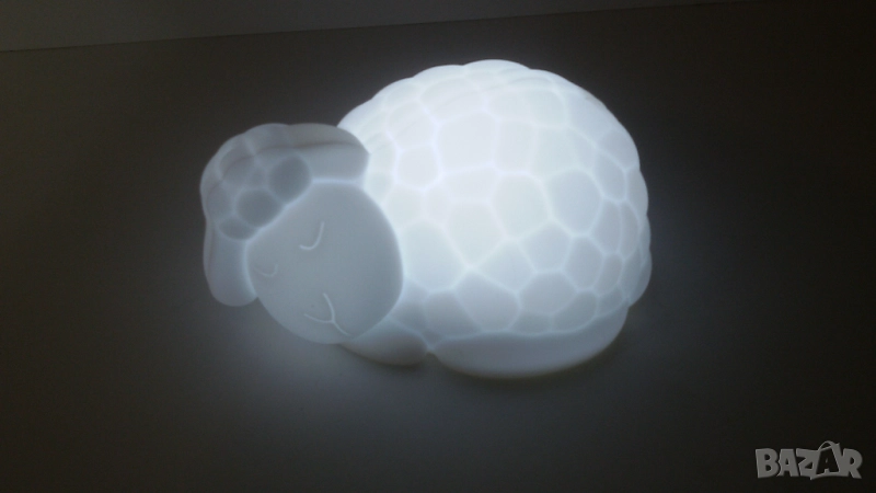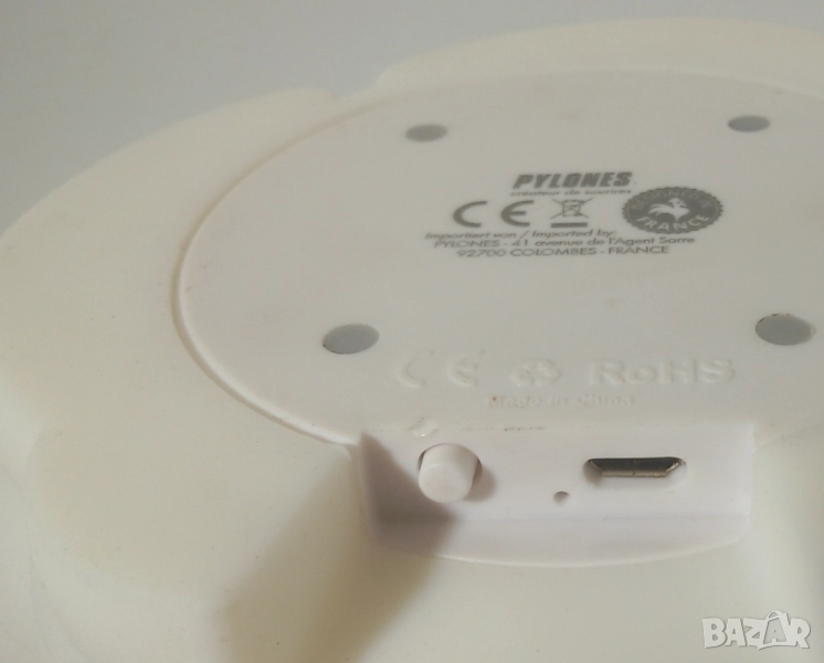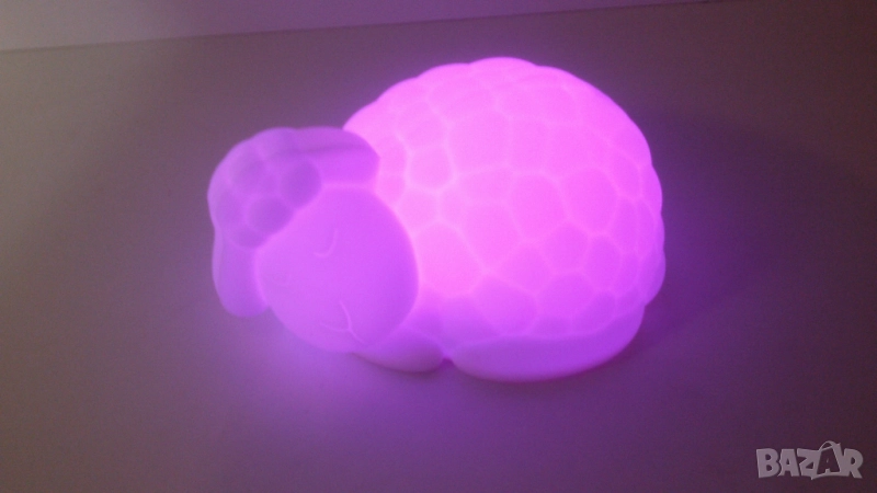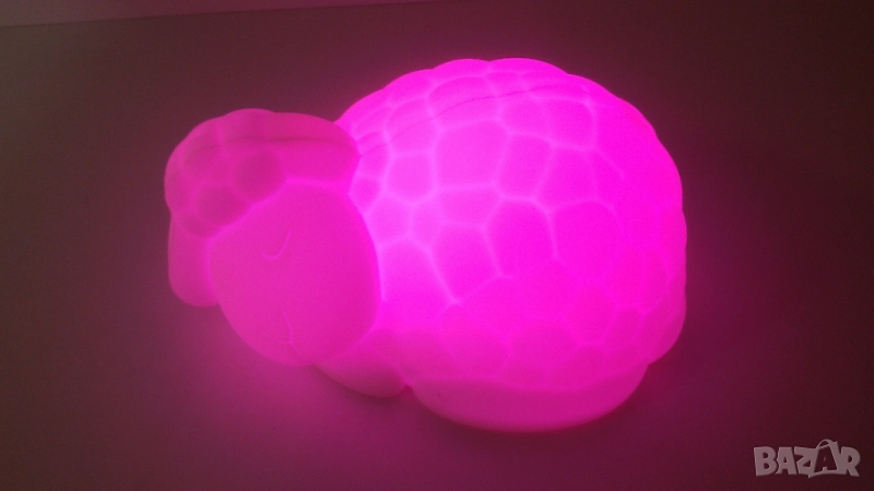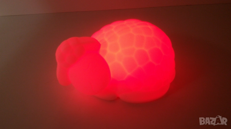 Има няколко режима - да свети бледо, по-силно, да си сменя цветовете бързо или бавно. Като я тропна по масата от 2-3 сантиметра, си сменя режимите. Копчето е за включване и изключване. Зарежда се с микро USB.