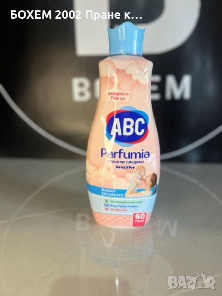 Мек омекотител за дрехи ABC Parumia, с нежен аромат, подходящ за чувствителна кожа. Обем 1440 мл.