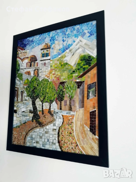 „Към върха” е стъклена мозайка с размер 45/55 см. Картината излъчва