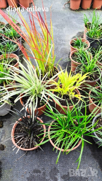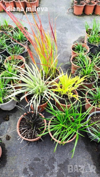 Промо пакет от 5 бр Декоративни треви - Императа Ред Барон,Черен и Зелен Офиопогон, Хаконехлоа и Лириопе!!