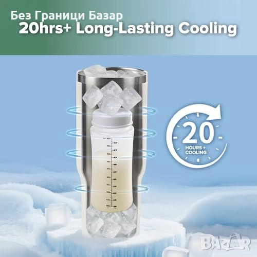 Нов Преносим охладител за кърма 900 мл + бутилка 300 мл, до 20 ч охлаждане