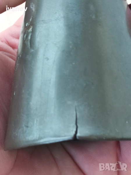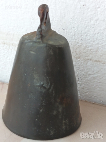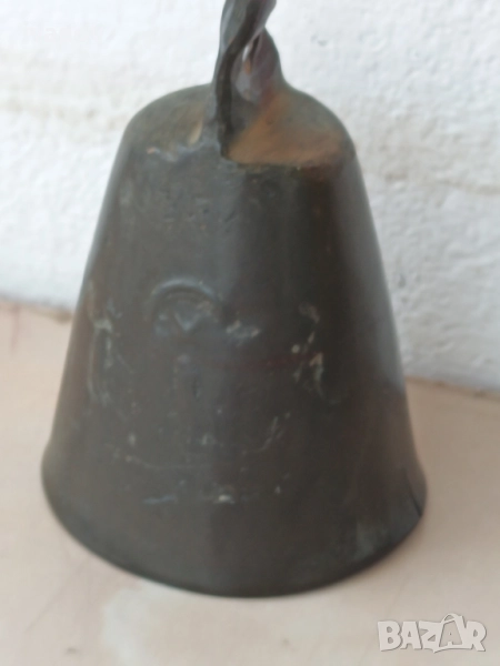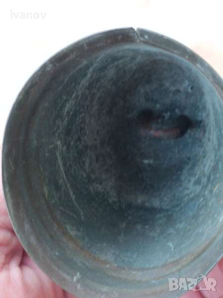 Турски бронзов чан. Общ размер -11 см. от ръб до ръб- 8 см., гърловина- 7 см. Забележка- няма го езика и има лека пукнатина- снимана е.