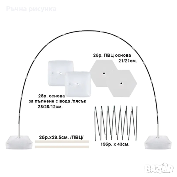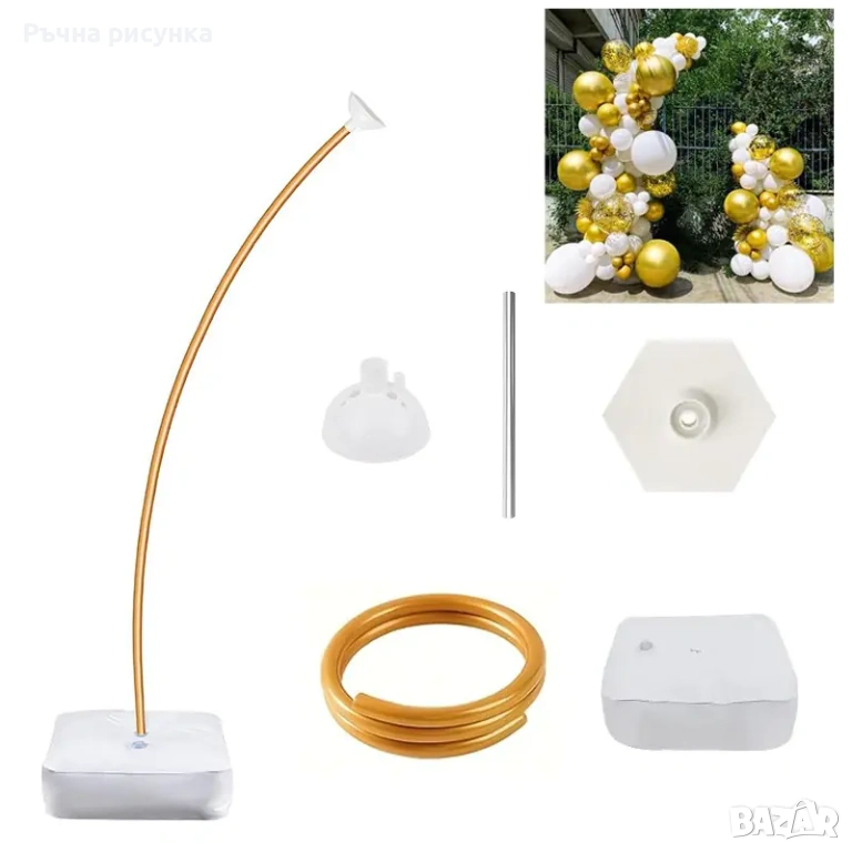 трета снимка е показана -Арка за балони c регулируема стойки с основа за пълнене с вода /3 м./2,7м./.