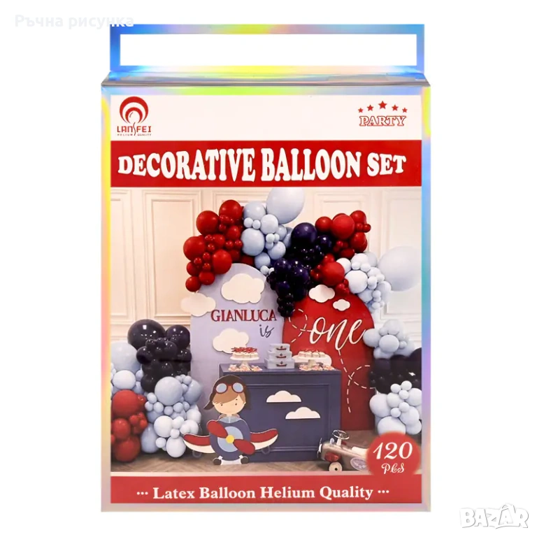 Високо качество балони от фолио и латекс, надуват се с помпа (ръчна или електрическа, която не е включена в комплекта).