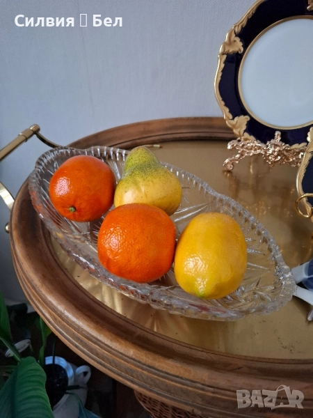 Кристална купа Винтидж кристал. Нейната класическа форма и тежест подсказват за висококачествена изработка и автентичност. Поставена на масата, тя нежно отразява светлината от прозореца, превръщайки я в спектър от цветове. Можете да я използвате като елегантен център на масата, където да подредите плодове като сочни круши и мандарини, или да я оставите празна, за да се наслаждавате на собствената ѝ бляскава красота. Тази купа е символ на изтънченост и вечна елегантност, която никога не излиза от мода. Цена 5️⃣8️⃣лв. 29,65 €•✽✧✽•°”˜🦋”°•✽✧✽•°”˜🦋”°•✽✧✽•°”˜🦋”°•✽✧✽•°”🦋˜”°•✽✧✽•