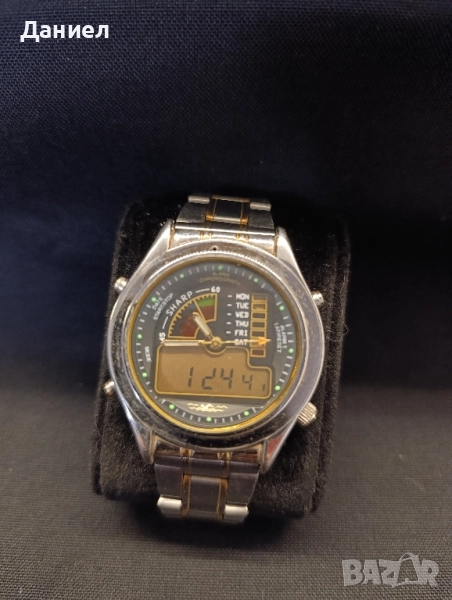 Много рядък електронен +аналогов часовник SHARP.Аналоговия работи без грешка електронния не изписва цифрите цялостно .