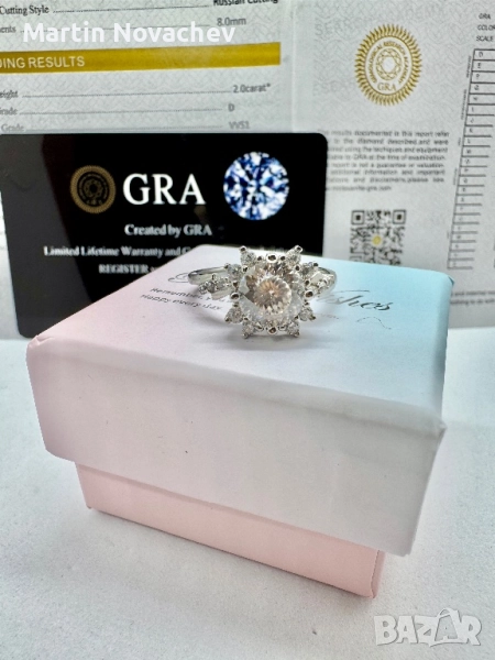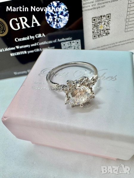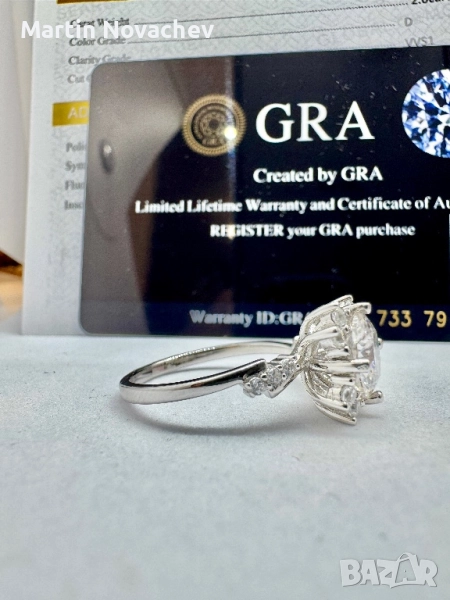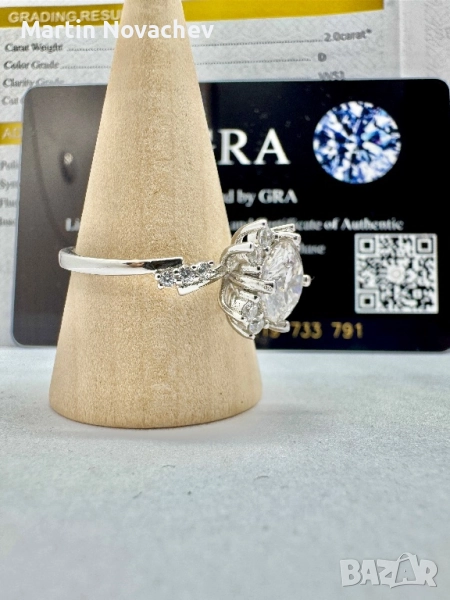 Сребърен пръстен с мойсанит (Диамант) 2 карата → Обява 51782381