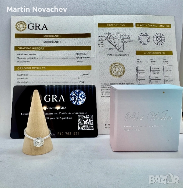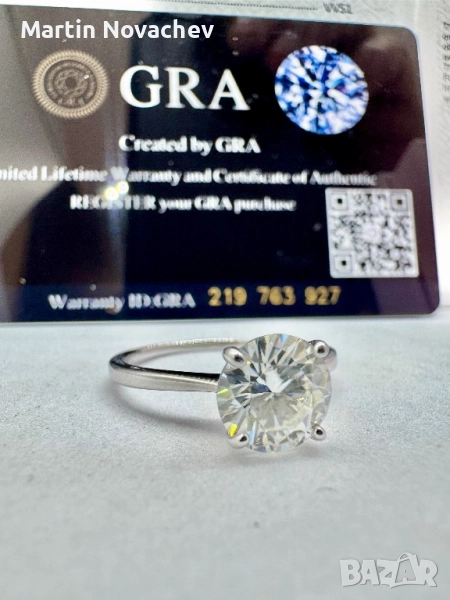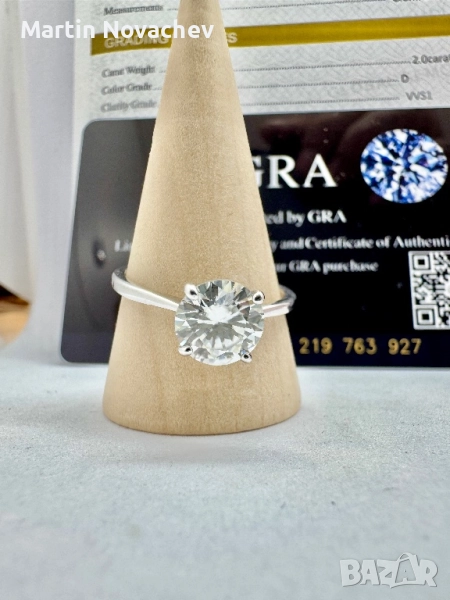 Сребърен пръстен с мойсанит (Диамант) 2 карата → Обява 51782457