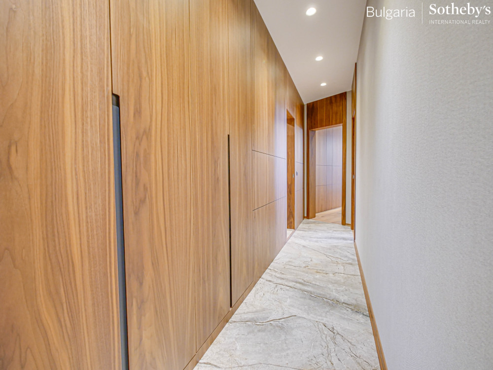 Разпределение: представително антре с обособена гардеробна, просторна дневна и трапезария с отделно обособена кухня, родителска спалня с гардеробно помещение и отделна баня, две светли спални с гардеробни помещения, две бани, мокро помещение и луксозни просторни тераси с изумителни гледки.