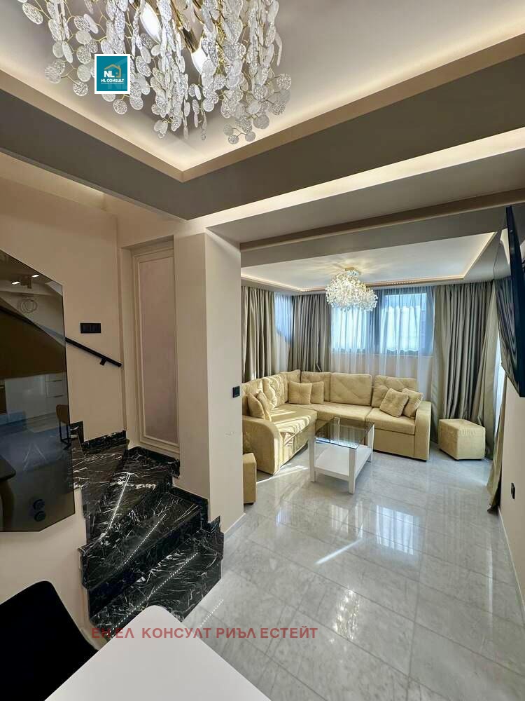 Интериорът на апартамента е модерен и с добре структуриран дизайн, съчетаващ лукс с удобство. Имотът е обазведен е изцяло с поръчкови мебели, в съчетание с естествен камък. Всички подове, стени и тавани на апартамента имат допълнителна шумоизолация и топлоизолация, троен стъклопакет дограма, VELUX покривни прозорци. Монтирана пречиствателна система за водата и аудио система във всички помещения.
