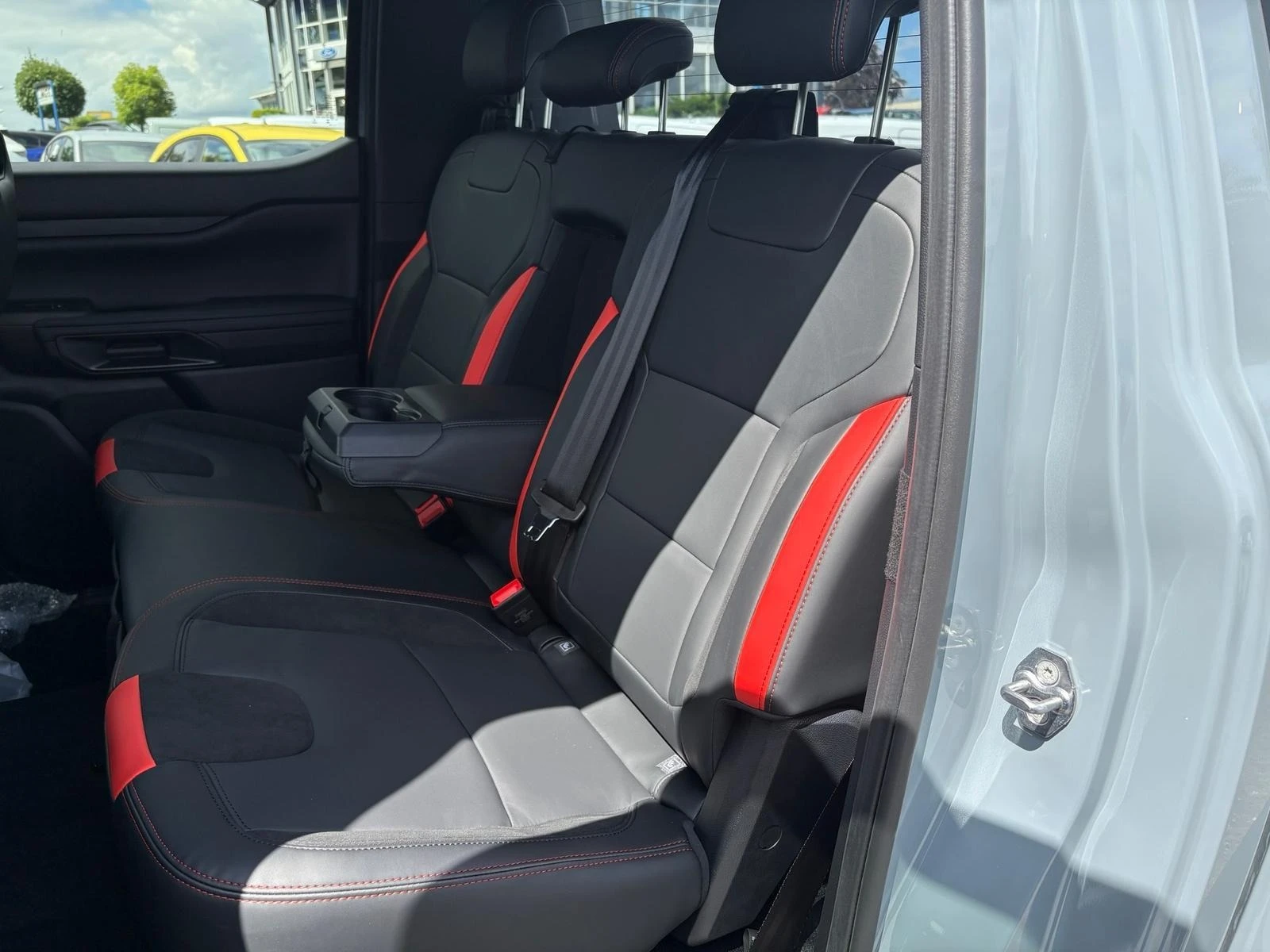 ролбар, спортни релси за товарния отсек, електрическо ролетно покривало за товарния отсек (вкл. защитна вана и 12V контакт на платформата). Специална тапицерия Raptor: седалки от Super-Matte кожа Ebony, Alcantara (Dinamica Auto Miko Wildleder) и допълнителни кожени вложки. Технологичен пакет 93 360 камера със Split View технология Разширен асистент за поддържане на лентата + асистент за връщане в лента Асистент за умора на водача Асистент за мъртва точка с покритие за ремарке Интелигентен адаптивен круиз контрол + интелигентен ограничител на скоростта с разпознаване на знаци Асистент за аварийно спиране при заден ход Park Pilot (предни и задни сензори) Теглич 13-пинов за ремарке до 2, 5 тона Асистент за маневриране с ремарке (с визуализация на траекторията) Мултимедия Аудио пакет 106 Ford SYNC 4A с навигация и AppLink 12" тъчскрийн FM/DAB антена Android Auto и Apple CarPlay (безжично) Bluetooth hands-free Гласово управление Bang & Olufsen Premium Sound (640 W, 10 говорителя + субуфер) Осветление и видимост Затъмнени задни и странични стъкла (от 2-ри ред назад) Подгрявано челно стъкло Датчик за дъжд и автоматични чистачки LED Matrix фарове (адаптивни), LED дневни светлини LED фарове за мъгла LED Matrix задни светлини Асистент за дълги светлини Автоматично затъмняващо се вътрешно огледало Интериор и комфорт 2-зонова климатроник система Мултифункционален спортен кожен волан (отопляем) Дигитално 12" инструментално табло Индуктивно (безжично) зарядно за смартфони USB портове за зареждане Амбиентно осветление 6 допълнителни превключвателя на таванната конзола Окачване и задвижване Performance Fox Live амортисьори Система за управление на терена (Terrain Management System) с 7 режима на шофиране Преден и заден 100% блокаж на диференциала Сигурност Алармена система с вътрешен мониторинг Допълнително оборудване Метален предпазител за двигателя и пластмасов за резервоара Антикорозионна защита на пода (восъчна) Електрически стъкла отпред и отзад (с Quickdown отпред) 400 W инвертор (преобразувател на напрежение) Джанти и гуми Пакет 19 17" алуминиеви джанти 8, 5J x 17 Гуми 285/70 R17 A/T (всесезонни със снежинка) Резервна гума 17"