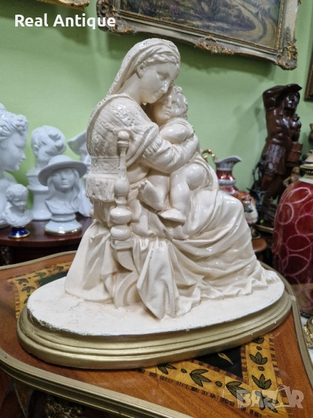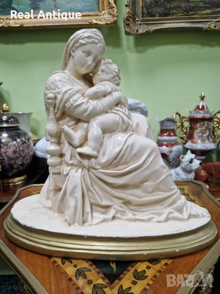 Продавам прекрасна голяма антикварна много красива керамична фигура статуетка композиция в много добро състояние. Тежка здрава масивна. Височина 36 см дължина 38 см и ширина 20 см. Чудесно допълнение към интериора на Вашия дом офис вила. Подходяща и за подарък. Работя с всички куриери. Отговарям бързо.