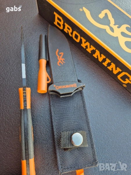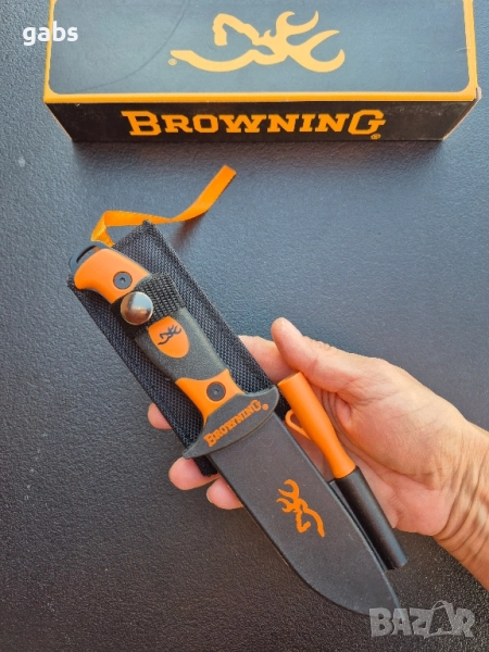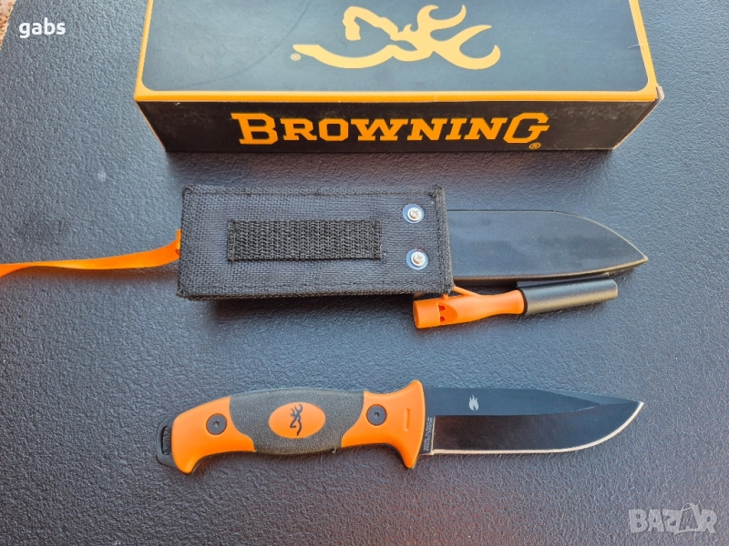 Нож BROWNING за оцеляване,кания с точило и свирка