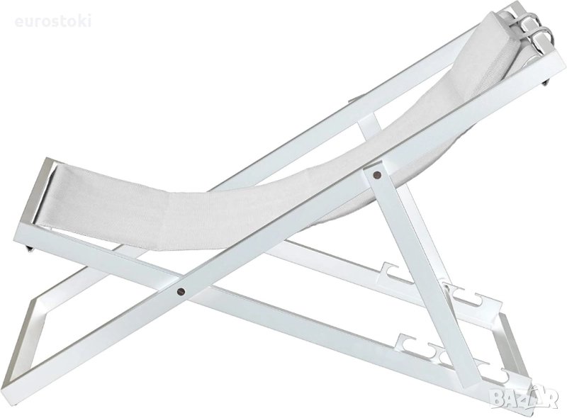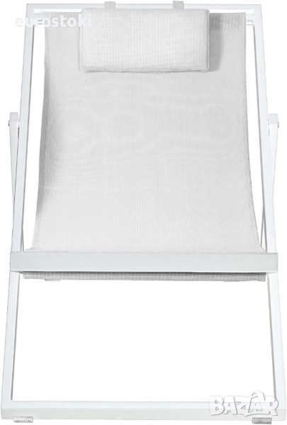 Сгъваем алуминиев шезлонг Duramax Newport, накланяща се седалка с удобна облегалка за глава, сгъваем шезлонг за палуби, вътрешни дворове, басейни, плаж и много други, бяла рамка с бяла ремък