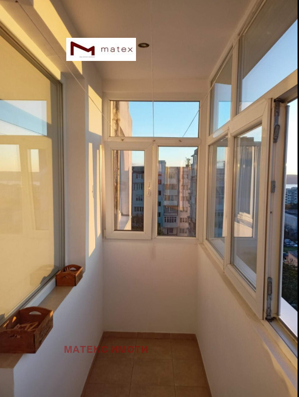 Матекс имоти и брокер Петя Касабова предлагаме ви за продажба тристаен апартамент с функционално разпределение. Имотът има следното разпределение: коридор, килер, дневна с кухненски бокс и тераса, две спални - едната от които с тераса, другата с килер, отделни санитарни помещения и изба. Жилището е с чиста жилищна площ от 60 кв.м, като площта НЕ включва терасите, общите части и избата. Апартаментът се намира на седми етаж (непоследен) в добре поддържана сграда с контролиран достъп, осигуряваща спокойствие и сигурност на обитателите. На етажа има допълнителен килер и камера. Частична морска панорама от двете тераси. Изложение: изток-запад, осигуряващо светлина и комфорт през целия ден. Състояние и характеристики: