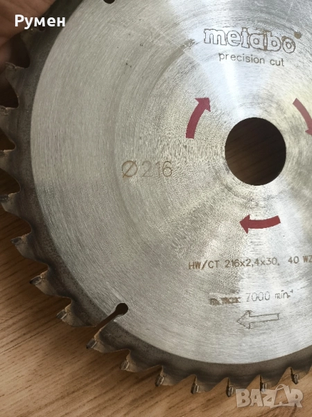 -Диск за циркуляр Metabo HW/CT има размери 216 x 30 мм и 40 броя зъби. Може да се използва в строителството. Подходящ е за обработване на дърво с пирони и бетонов остатък. Подходящ е за модели KS 216 / KGS 216 / KGS 216 Plus с цена 15 евро