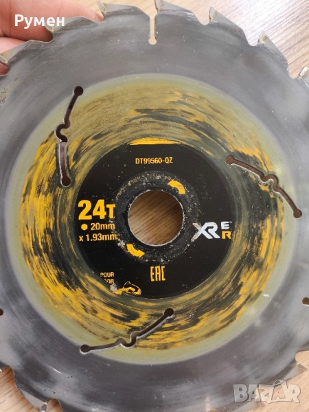-DeWalt DT99560-QZ Диск за циркуляр за композитни декинг 165 мм (6.5") 24T Extreme с 20 мм.отвор за поставяне на оста , за ръчен циркуляр на батерия с цена 15 евро