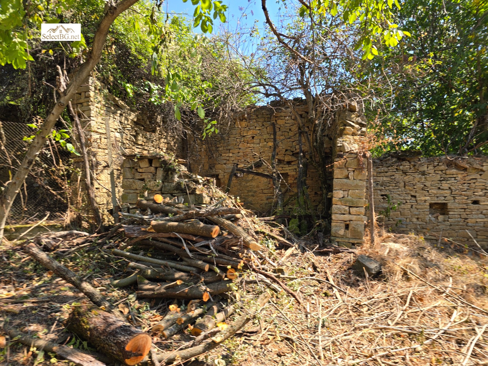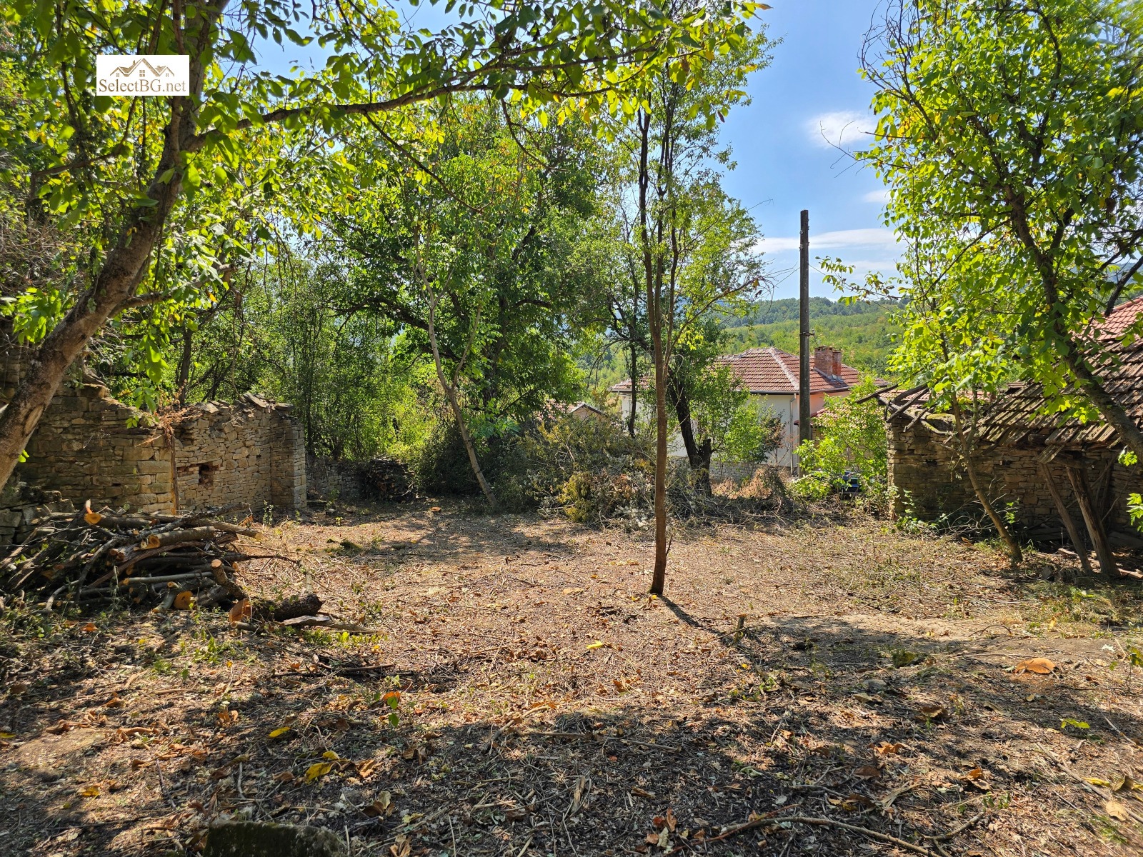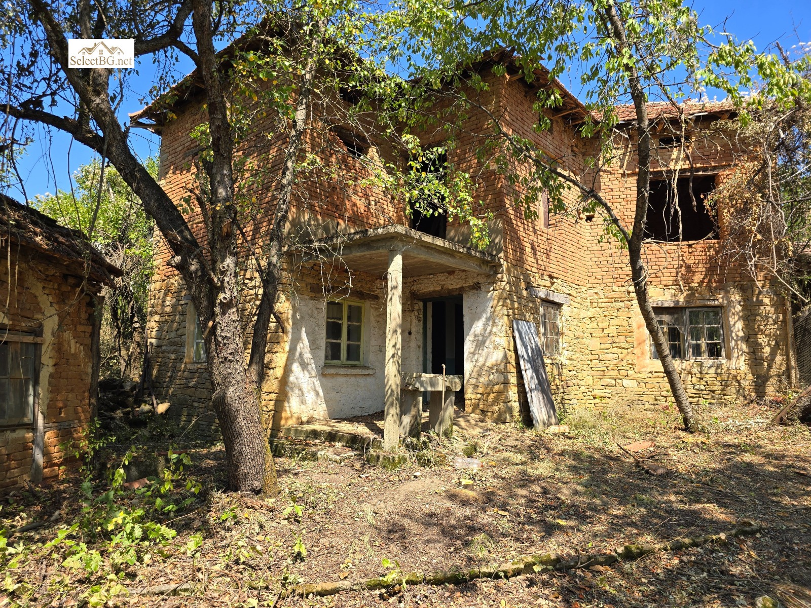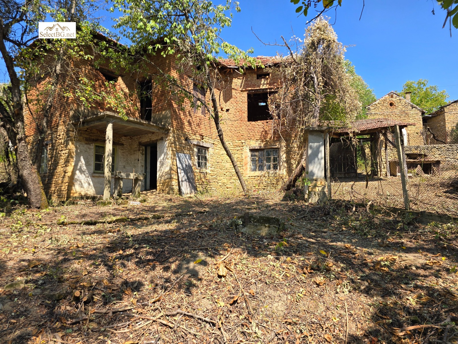 Имотът е УПИ 1 412 м2 и се намира на метри от площада на селото , граничи от три страни с асфалтова улица и в него има построени двуетажна полумасивна жилищна сграда 132 м2 и стара едноетажна паянтова сграда с площ 25 м2 , както и каменни останки от външни постройки.