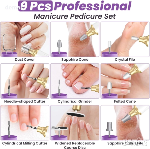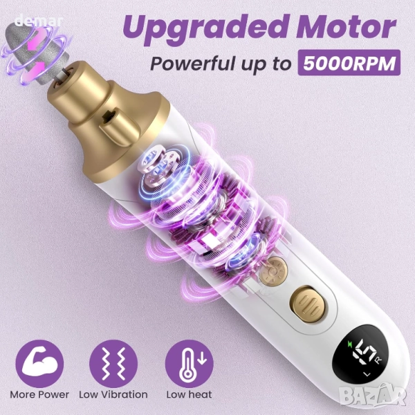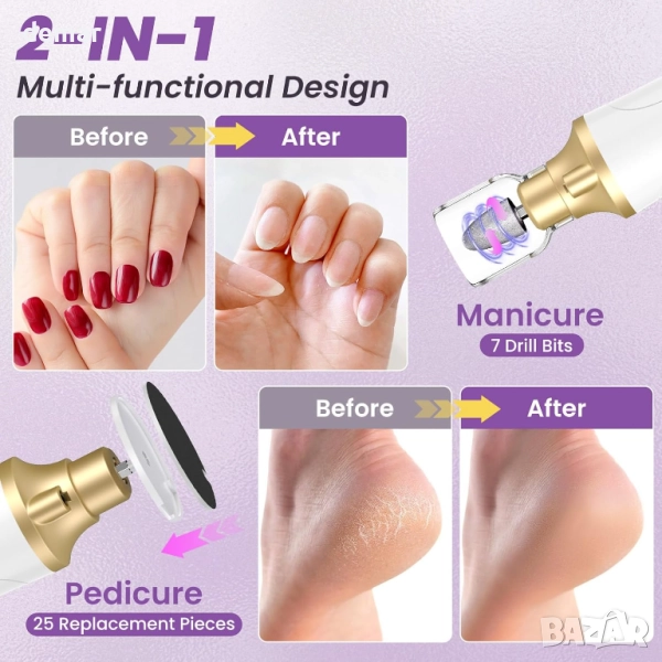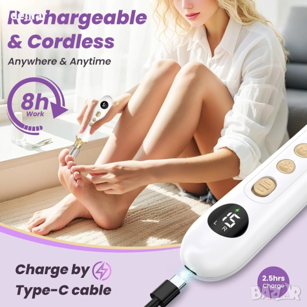 Тази професионална акумулаторна пила за нокти разполага с фин сапфирен диск с по-широк диапазон на шлифоване, което я прави подходяща за маникюр, педикюр, оформяне, полиране, грижа за кожички и премахване на дебели нокти или твърда кожа. Предлага безжична употреба с дълготрайна батерия от 2000 mAh, 15 регулируеми скорости и двупосочно въртене за безопасен и прецизен контрол. Оборудвана с 8 сменяеми свредла, 25 шлифовъчни ленти, капак против прах и LED светлина за ясна видимост, тя осигурява гъвкава и точна грижа за ноктите у дома. Проектирана както за начинаещи, така и за опитни потребители, тя осигурява резултати с качество на салон и се предлага в елегантна опаковка, което я прави подходящ подарък.