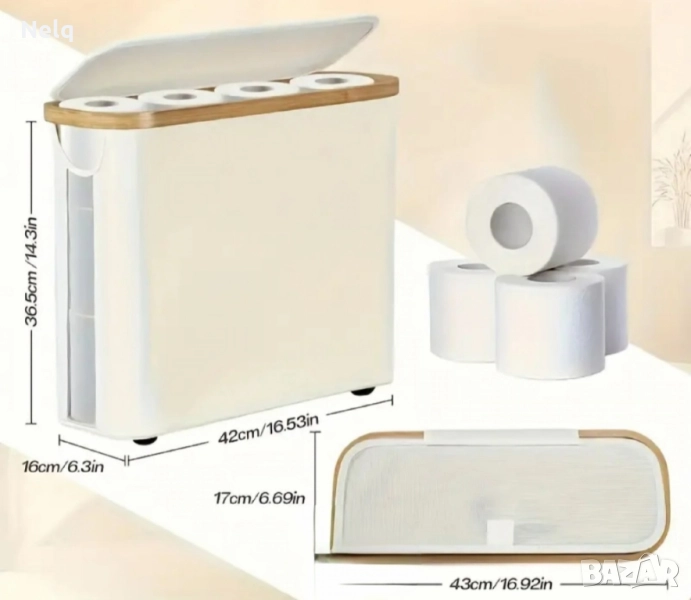 Практичен и компактен контейнер за съхранение на тоалетна хартия или други неща. Много практичен и компактен. Подходящ за баня или всекидневна.