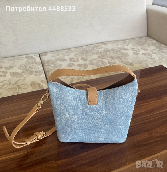 Дамски чанта с козметична чантичка. Экокожа. Цвят син деним модел. Размер чанти 26*21*11 см. Размер чантички 20*12*7 см