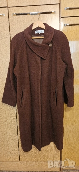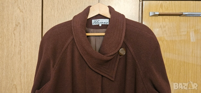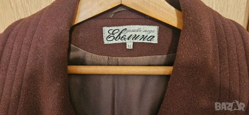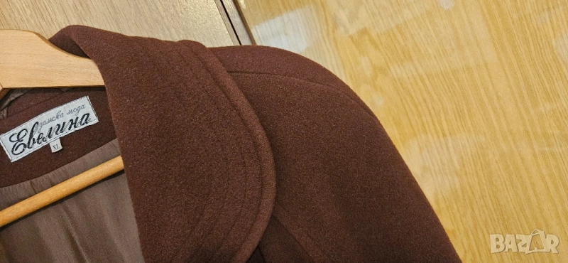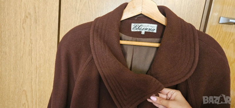 Кафяво дълго палто на модна къща Евелина. XL размер. Дължина 110 см, широчина 62 см. Отлично състояние. Изпращам чрез Еконт с преглед и тест.