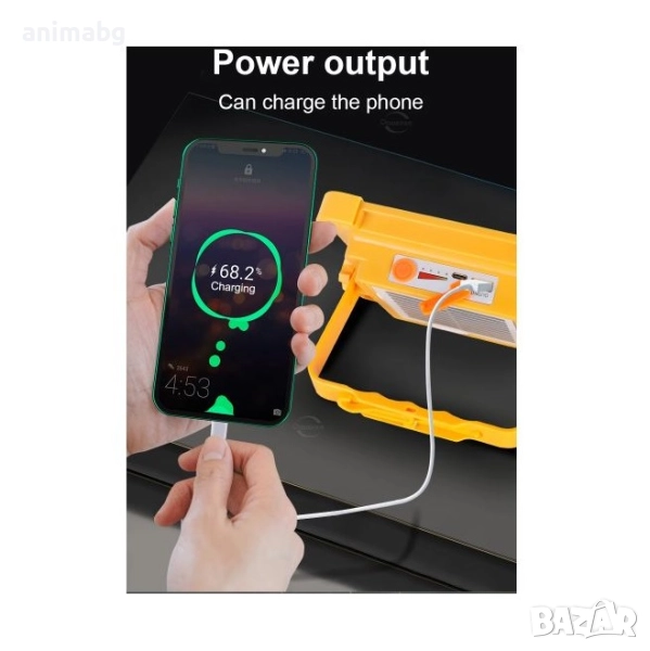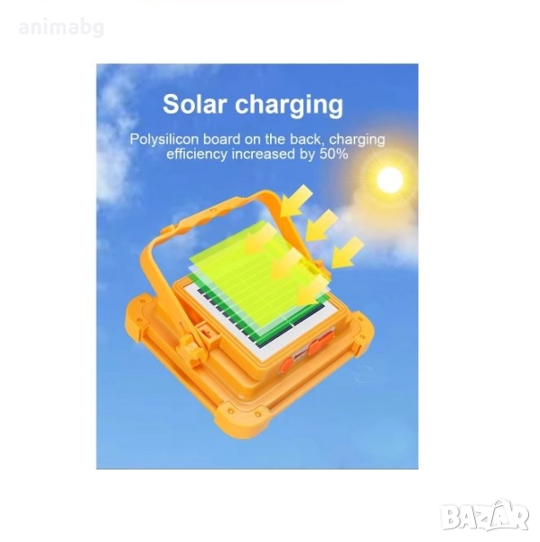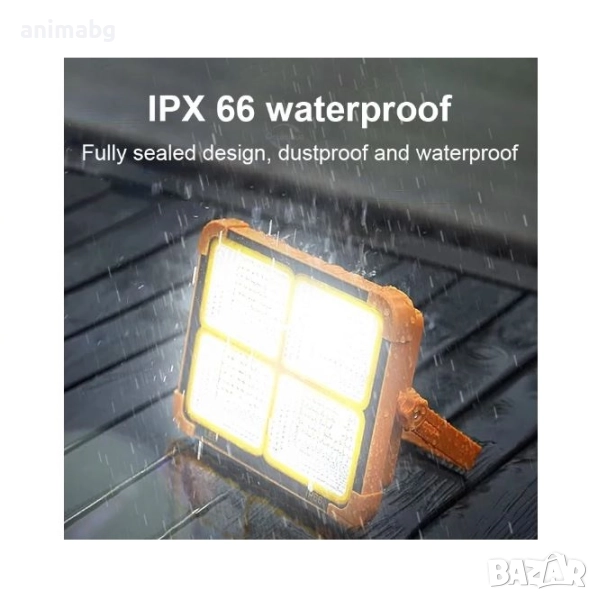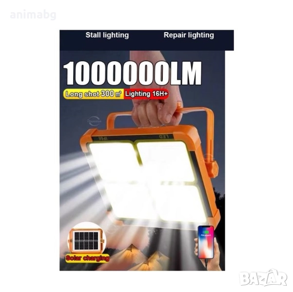 Двоен източник на светлина Основна светлина + страничен прожектор Покрива големи площи, идеален за работа и спешни случаи, Акумулаторна батерия 20000mAh, Дълго време на работа: 7–16+ часа Поддържа зареждане с Type-C и слънчева светлина