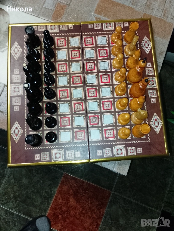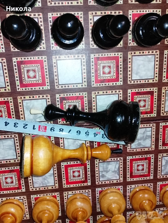Шах48/48 с дървени фигури от орех и габър → Обява 51787327