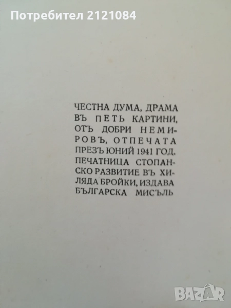 Честна дума - драма в пет картини / Добри Немиров 1941г. → Обява 51787921