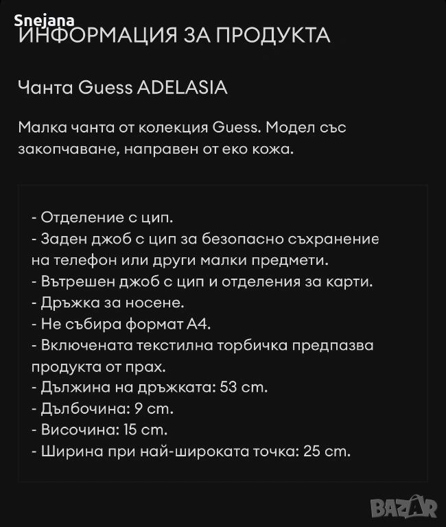 Чанта GUESS за 66€ от 147€ → Обява 51788222