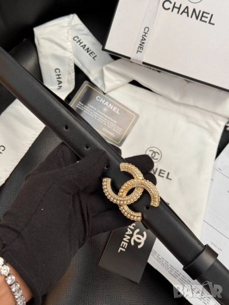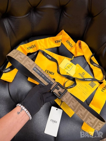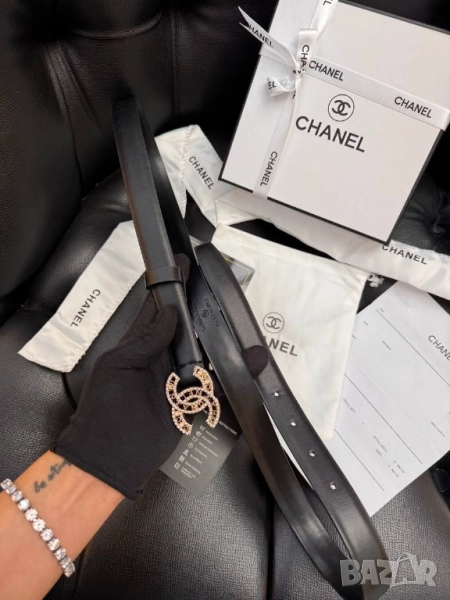 колани от естествена кожа в кутия, сертификат и противопрахова торбичка chanel fendi