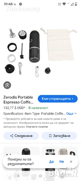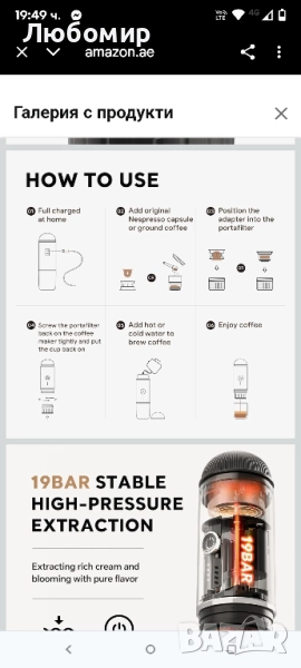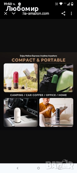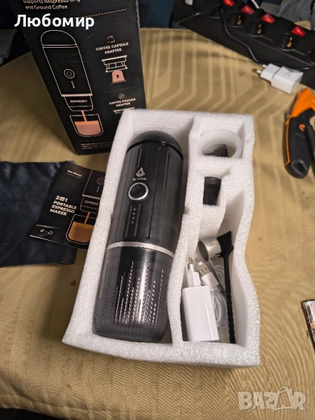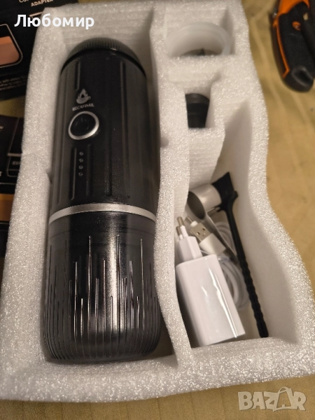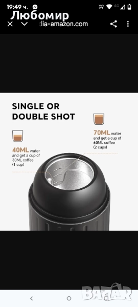 преносима кафемашина: С акумулаторна батерия, бързо загряване, екстракция с един бутон, не е необходимо ръчно натискане. Тази акумулаторна преносима кафемашина е най-добрият избор, за да се насладите на до 60 мл истинско еспресо у дома, в офиса и в движение.