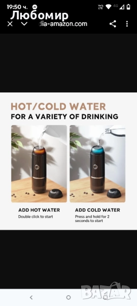 СТАРТ С ЕДИН БУТОН, ЛЕСНА РАБОТА Тази преносима електрическа еспресо машина е лесна за употреба и улеснява приготвянето на кафе. Ако използвате студена вода и изберете режим на горещо приготвяне, са необходими 3-4 минути, за да се загрее бързо сама. Ако използвате директно гореща вода и изберете режим на горещо приготвяне, можете да получите ароматно кафе веднага. Освен това е удобно да използвате студена вода и да изберете режим на студено приготвяне, за да приготвите кафе бързо.БЪРЗО САМОЗАГРЯВАНЕ Преносимата кафемашина се нуждае само от 4 минути, за да загрее 50 мл вода до идеалната температура от 92°C/198°F, а екстракцията с високо налягане от 19 бара осигурява по-богата пяна за всяко кафе, което може да се приготви.