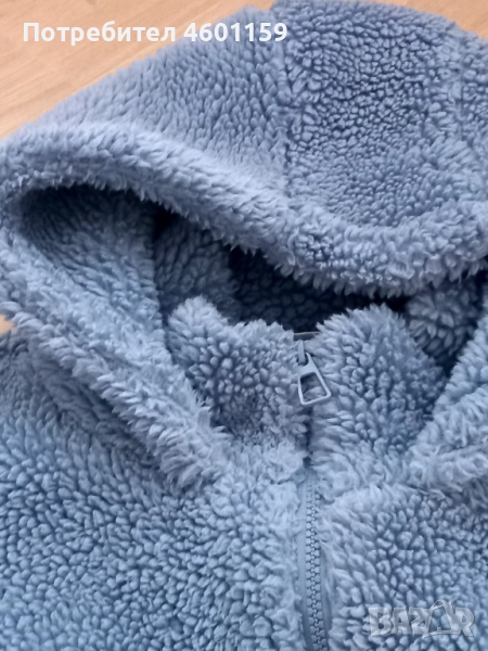 Ефектно дамско яке в син цвят. Качествена и лека топла материя подходяща за есенно зимния сезон. Модел с качулка и два джоба.Размер XL.В отлично състояние, еднократно използвано, чисто