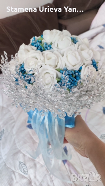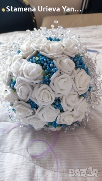 Букета е изключително уникален и красив, с нежни цветове. - синъо и бяло.