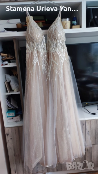 - Дизайнерска официална рокля - Много стилна, за най- специалният Ви ден!Роклята може да бъде сватбена, може да бъде и абитъоренска, а може да бъде и за някакъв друг официален повод, защото не е бяла, а цвят екрю.